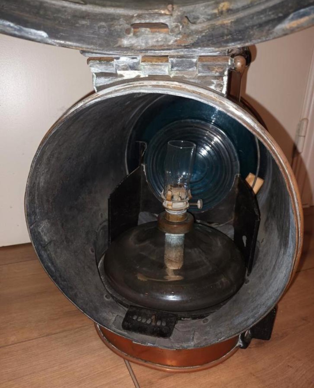 Historie: Veel van dit soort lantaarns dateren uit de 19e eeuw of het begin van de 20e eeuw. Ze werden in Nederland tot ver in de 20e eeuw gebruikt door spoorwegmaatschappijen zoals de NS.