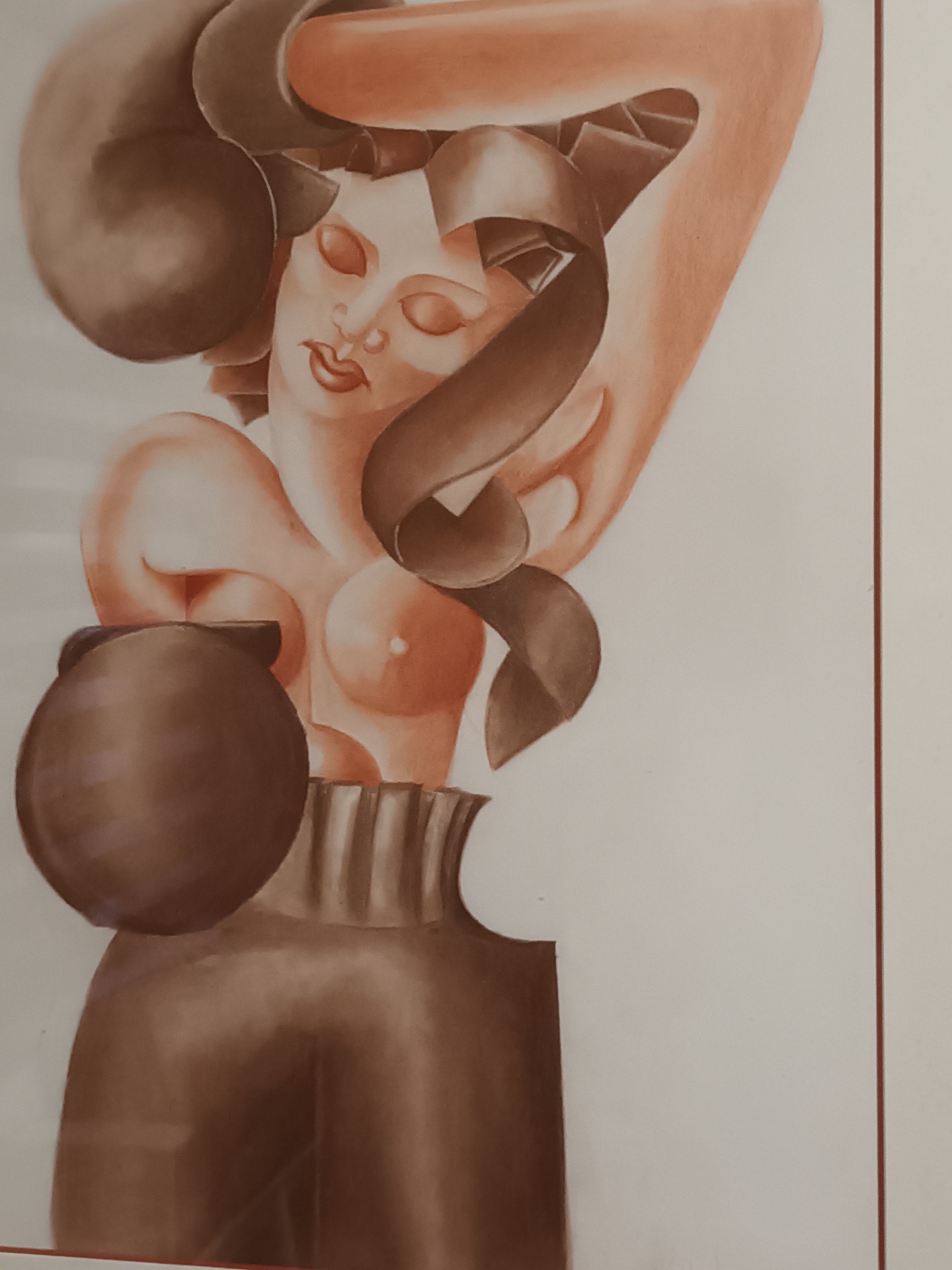 Kunstwerk van een gestileerde figuur in art-deco stijl.