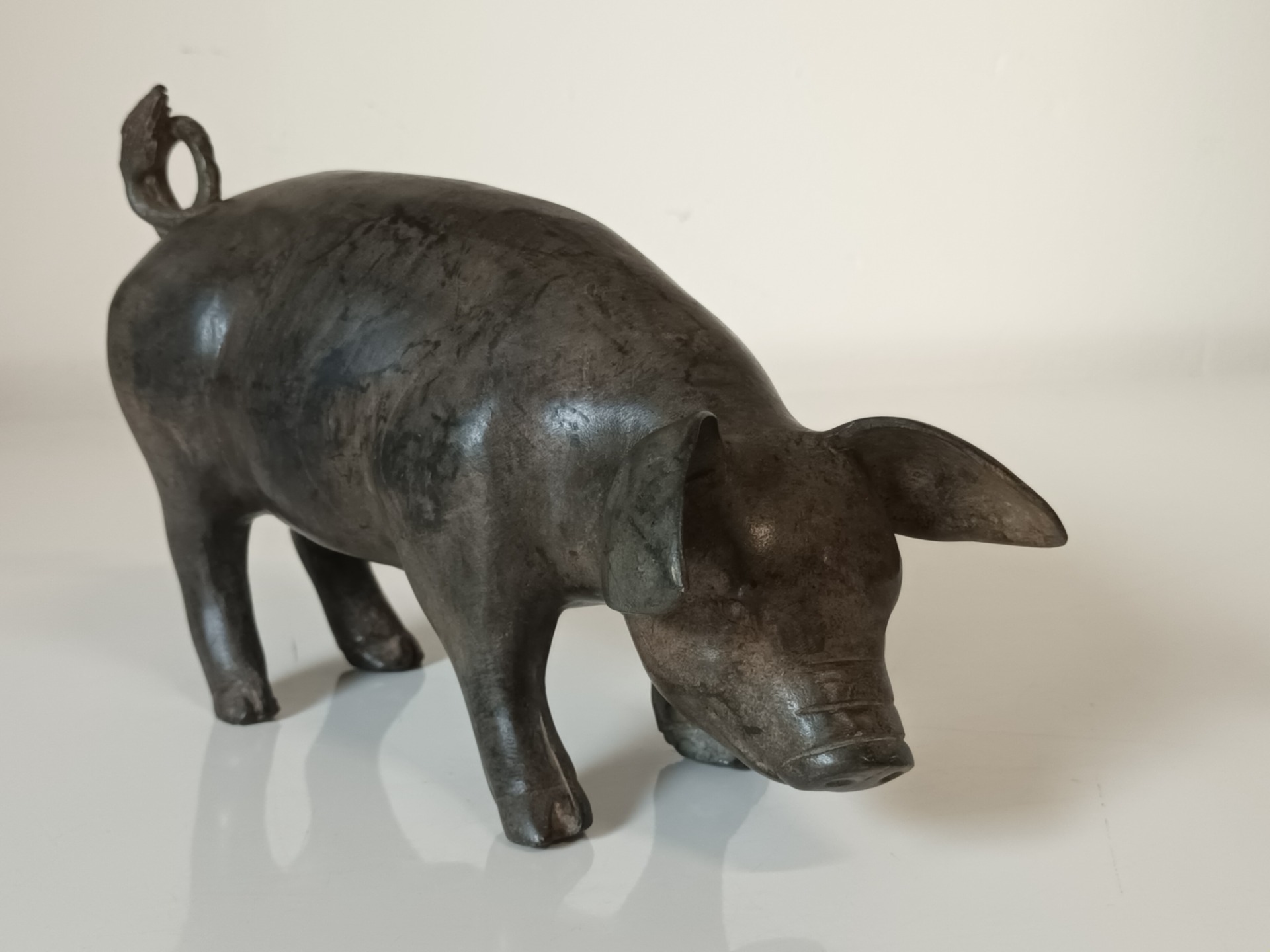 Bronzen beeldje van een vrouwelijk varkentje of Cochon femelle van de Franse Pierre Chenet. Gepatineerd en gesigneerd met het kroonmerk van de gieterij. Gewicht 1400 gram Lengte 21 cm Hoogte 13 cm Diepte 8 cm.